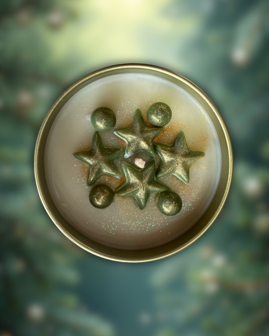 Decorada com estrelas e esferas verdes com toque dourado, ela simboliza prosperidade, fé e novos começos — tudo o que o Natal representa.