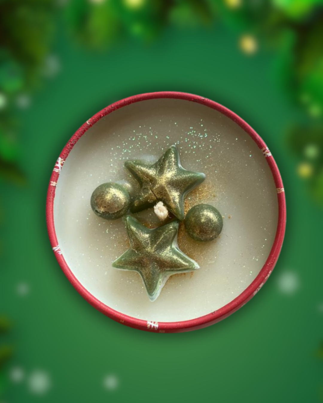 Decorada com estrelas e esferas verdes com toque dourado, ela simboliza prosperidade, fé e novos começos — tudo o que o Natal representa.