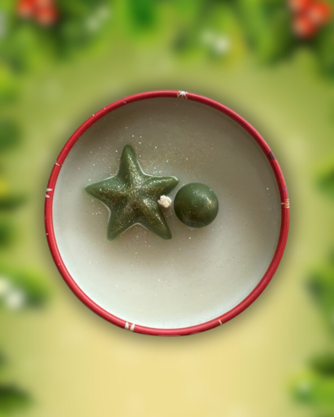 Decorada com estrelas e esferas verdes com toque dourado, ela simboliza prosperidade, fé e novos começos — tudo o que o Natal representa.